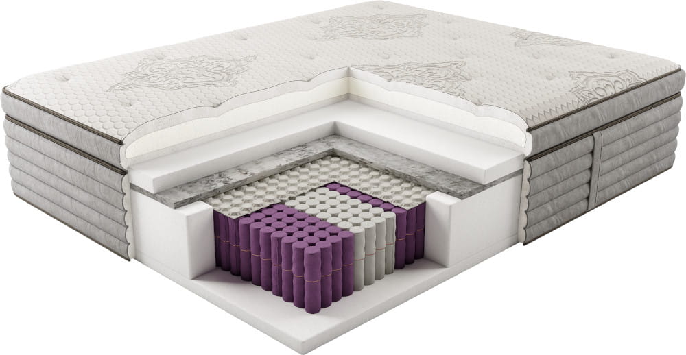 - Wysokość materaca ok. 34 cm – monumentalna wysokość ułatwiająca wstawanie i nadająca luksusowy wygląd sypialni.