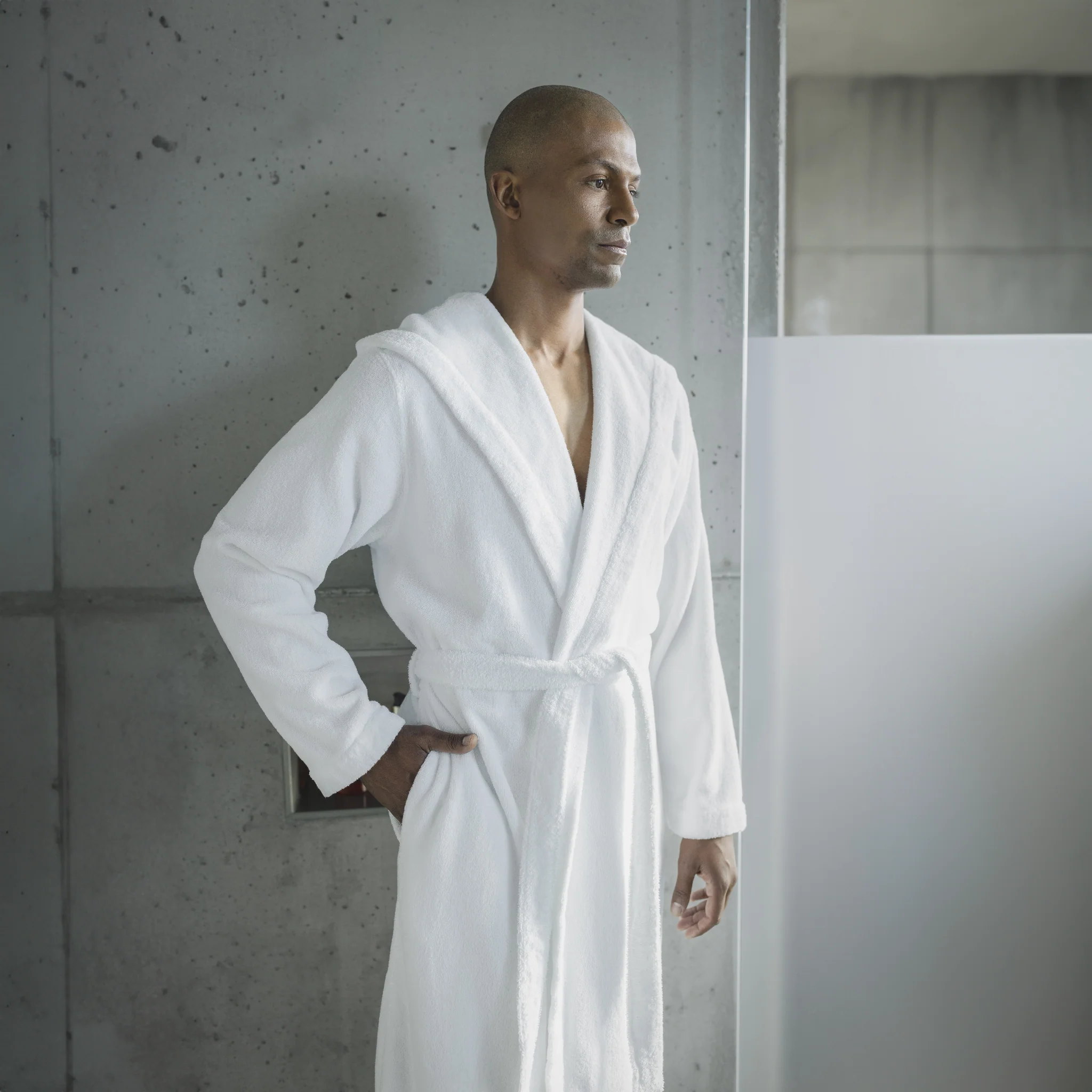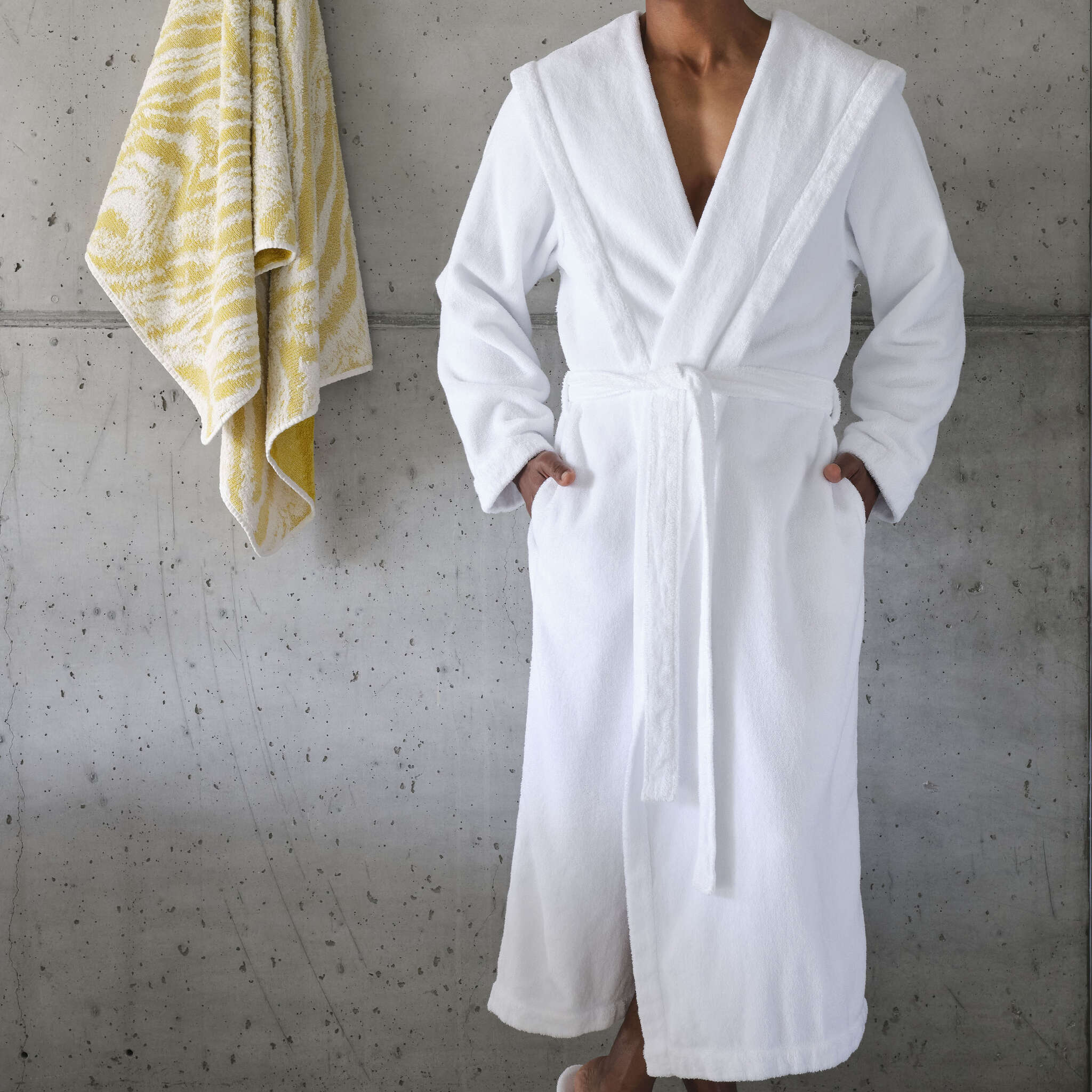 Wybierz model Alex, jeśli szukasz szlafroka, który łączy w sobie sportową funkcjonalność z luksusowym wykończeniem. Poczuj na własnej skórze lekkość i miękkość bawełny Giza, która zmienia każdy poranek w energię do działania.