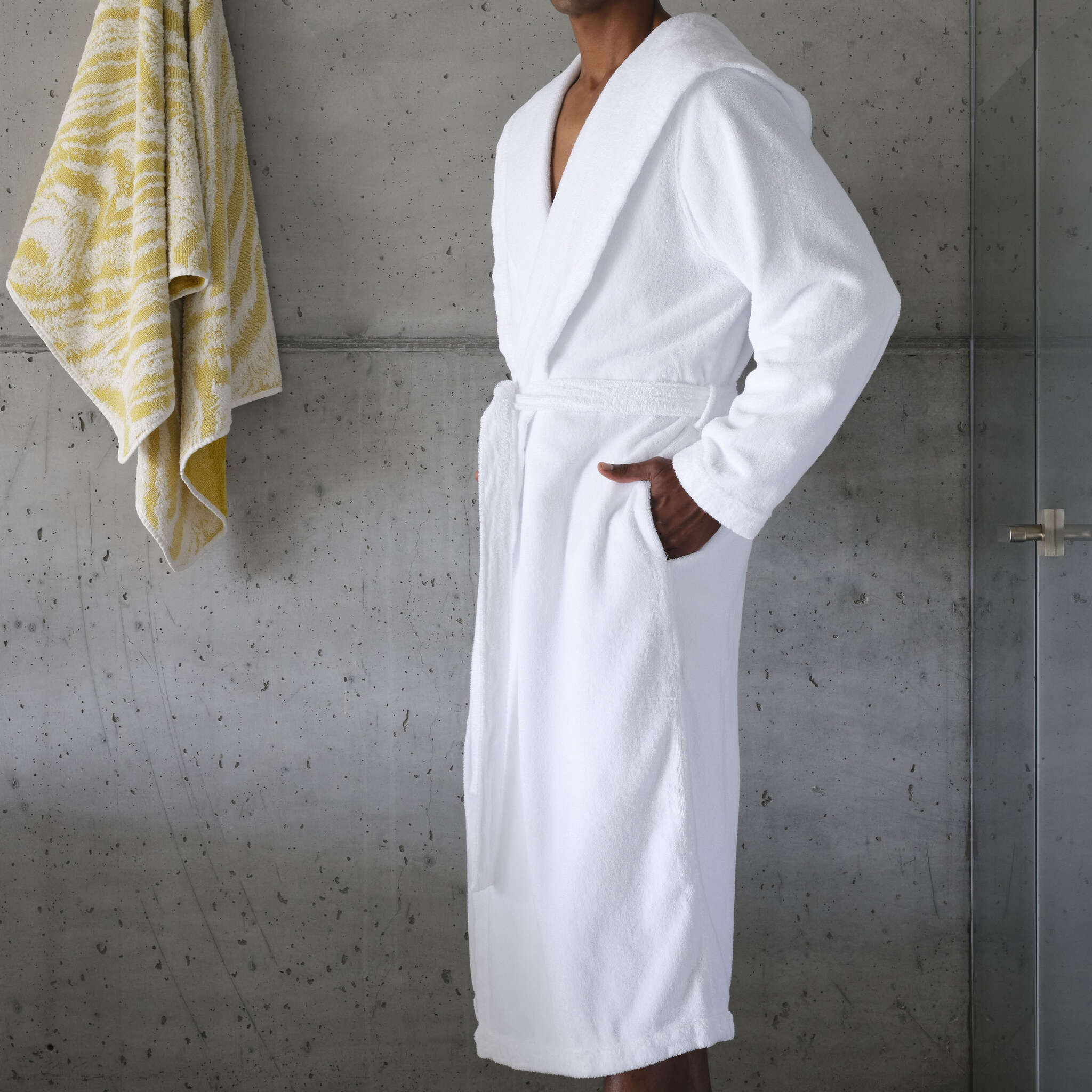 - Funkcjonalność z Kapturem: Model Alex został zaprojektowany z myślą o maksymalnej wygodzie. Obszerny, elegancki kaptur pozwala na szybkie osuszenie mokrych włosów i dodatkowo chroni przed przeciągami, wzmacniając poczucie przytulności po wyjściu z kąpieli.