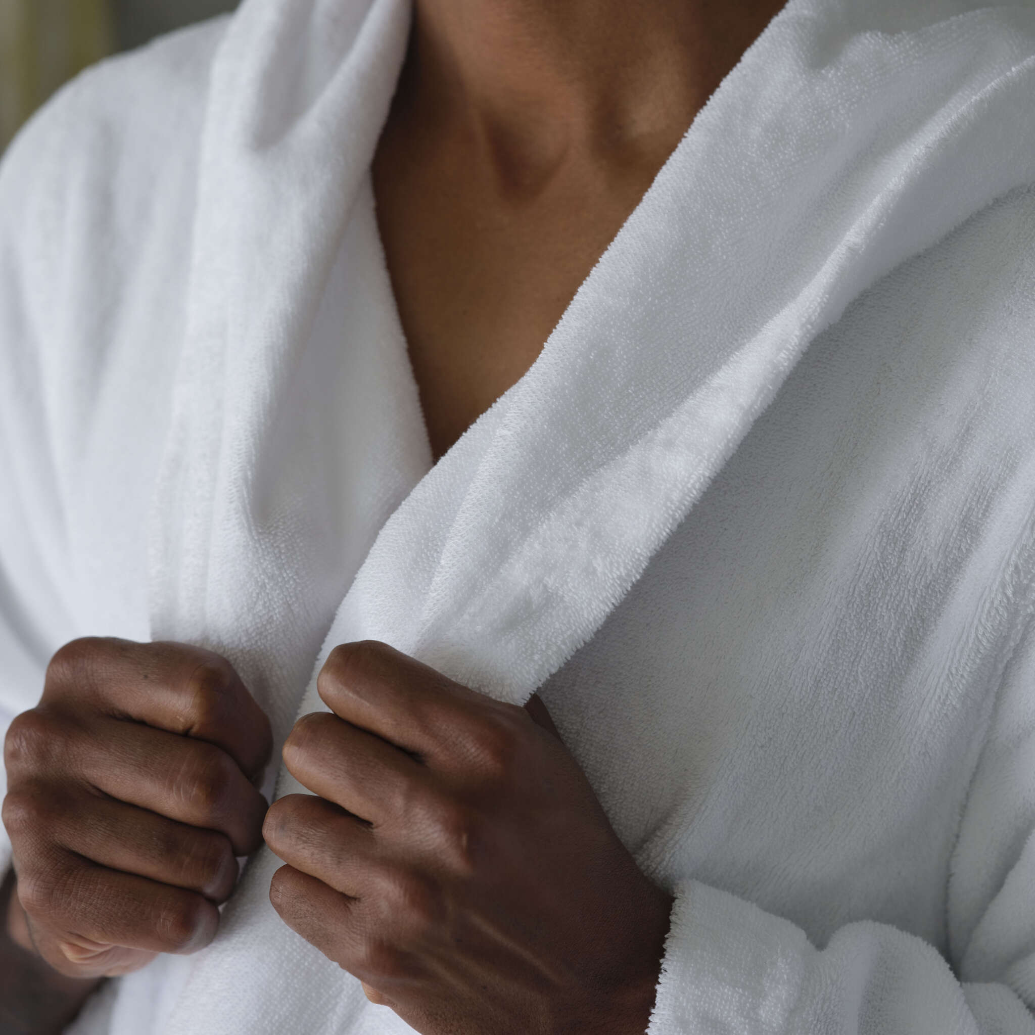 - Optymalna Gramatura 500 GSM: Wyjątkowa gęstość splotu sprawia, że szlafrok jest niezwykle komfortowy i puszysty. Gramatura 500 g/m² jest uznawana za „złoty środek” – gwarantuje luksusowe odczucia na skórze, jednocześnie pozwalając materiałowi szybciej schnąć, co podnosi walory użytkowe modelu Alex.