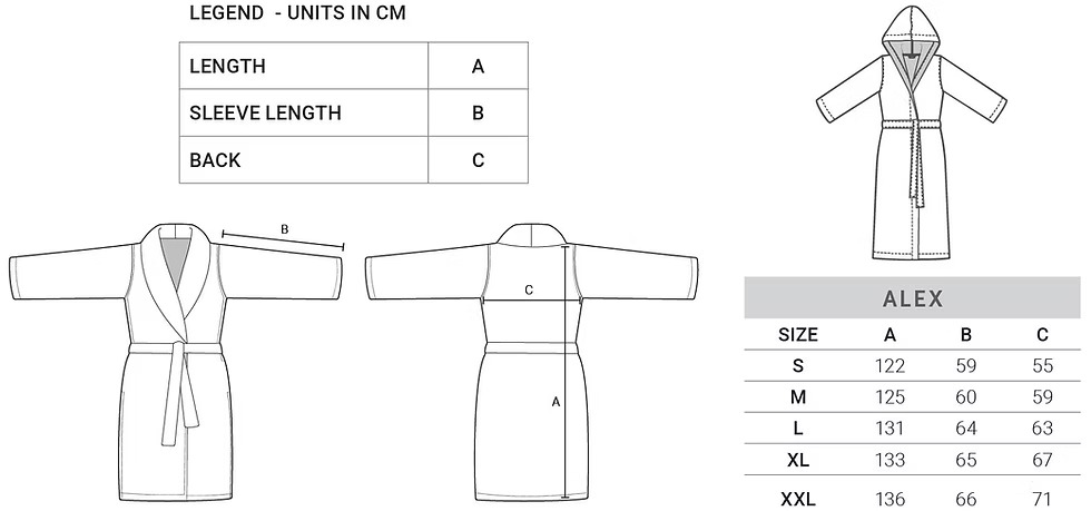 Tabela rozmiarów szlafroka Alex: